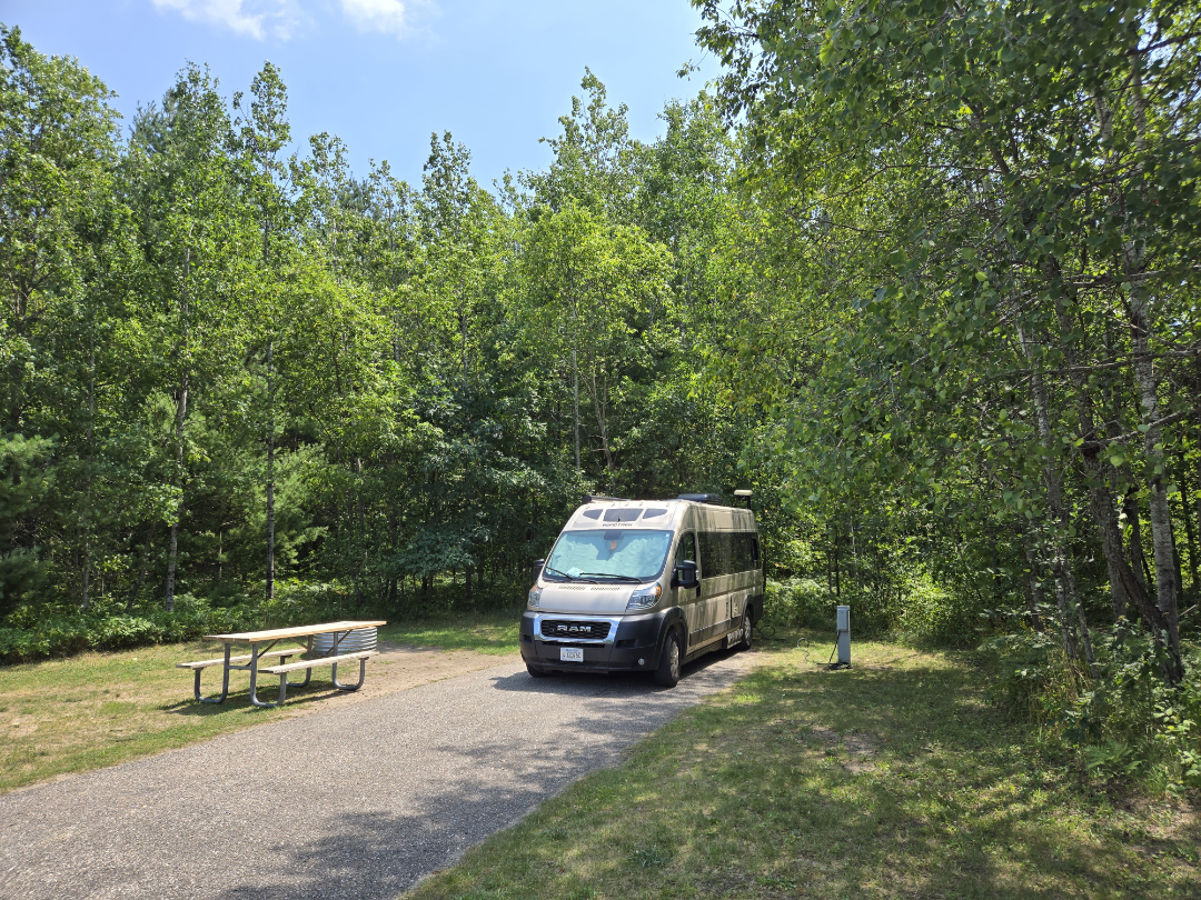 We Drive Only 20 Miles to Grayling Michigan to stay in Hartwick Pines Campground. Still waiting for Niki’s Covid to be Over.