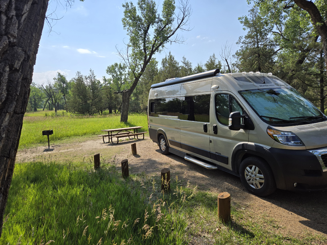 Here you can see our van in the parking lot.